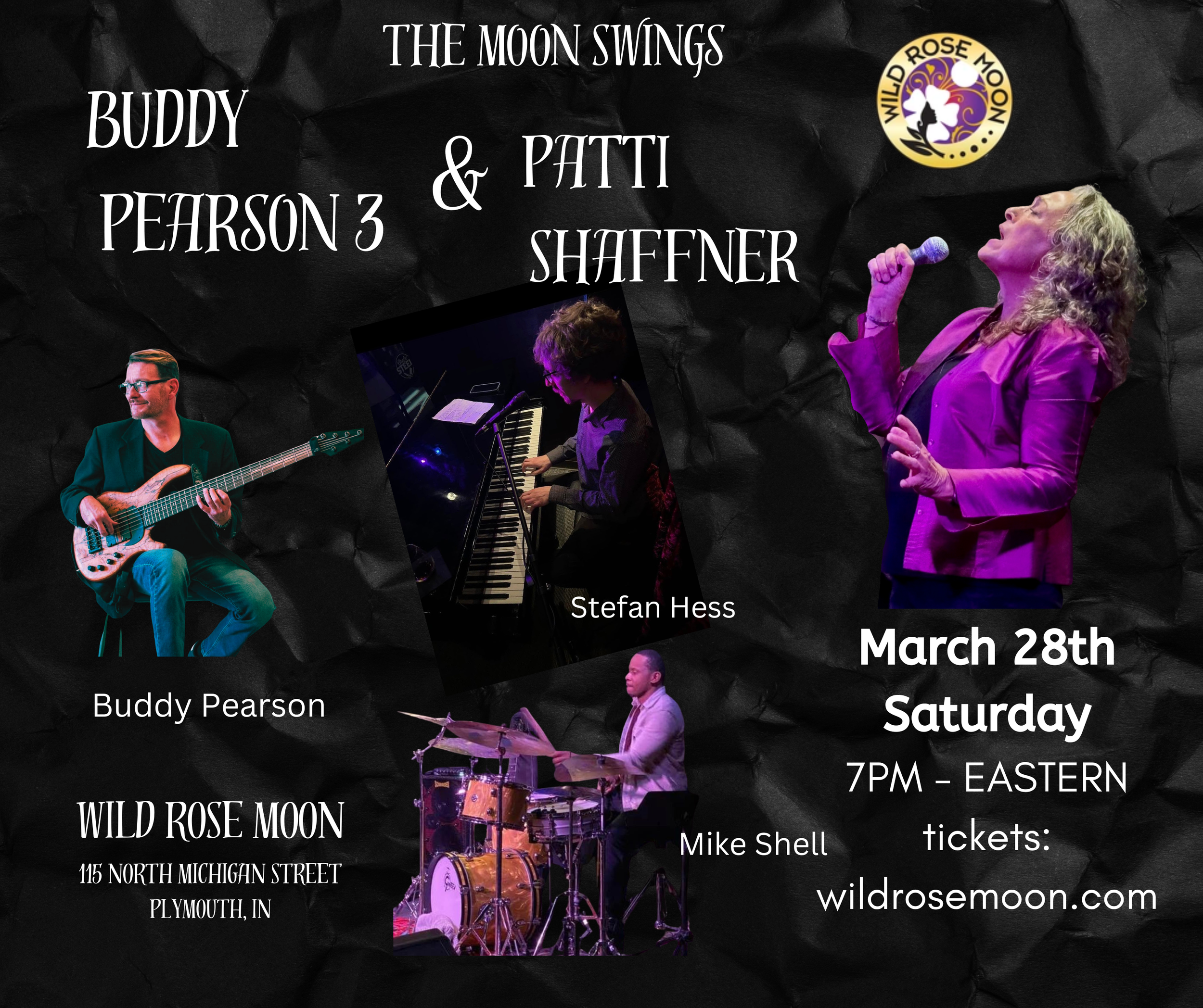 Wild Rose Moon: Saturday, March 28th - 7PM ET with Buddy Pearson 3 (Buddy, Stefan Hess & Mike Shell) - “The Moon Swings” Jazz